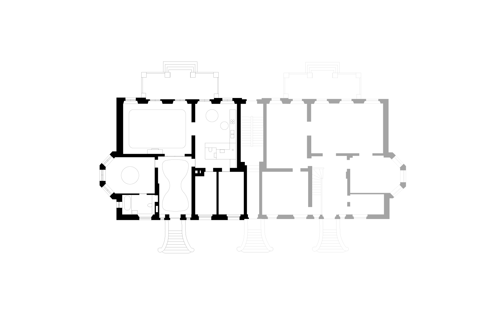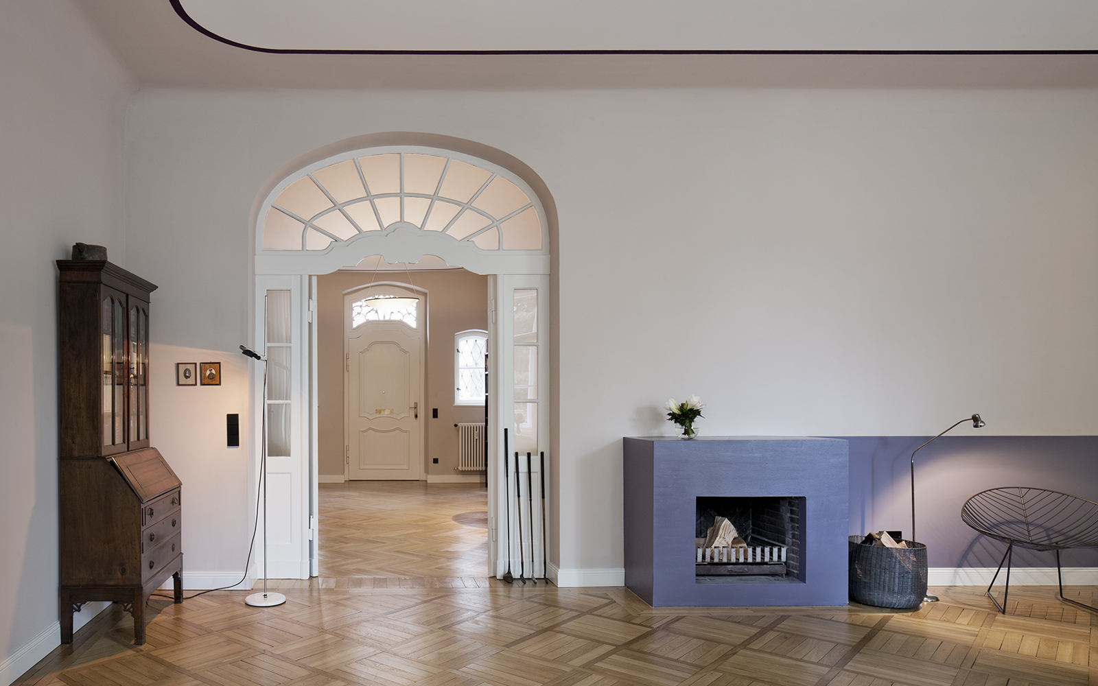 Das von den Architekten Grisebach und Rehmann 1923 geplante und heute denkmalgeschützte Mietshaus vereint Typologien des Wohnungsbaus der Reform-bewegung mit gestalterischen Rückgriffen auf die Formensprache des Barock. Die Sanierung macht die ursprüngliche reformative Raumidee der Belétage wieder erlebbar. Minimalistische innenräumliche Eingriffe überhöhen die bereits der Ursprungskonzeption eingeschriebene Dualität moderner Raumkomposition und „tradierter Oberfläche“ zu einem Raumerlebnis aus Atmosphäre und Irritation.