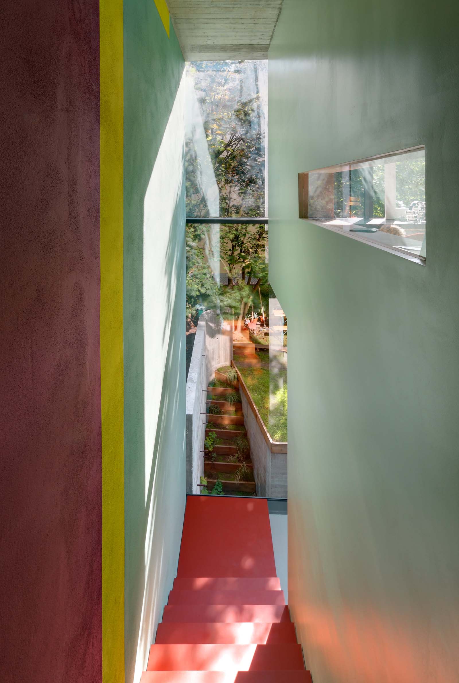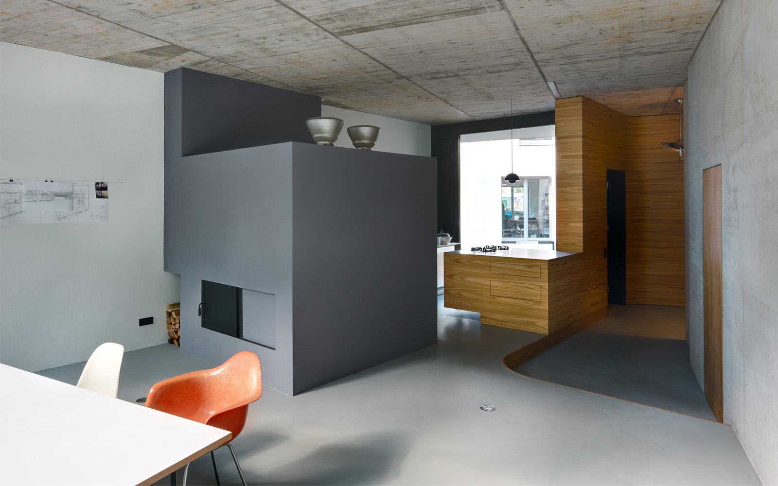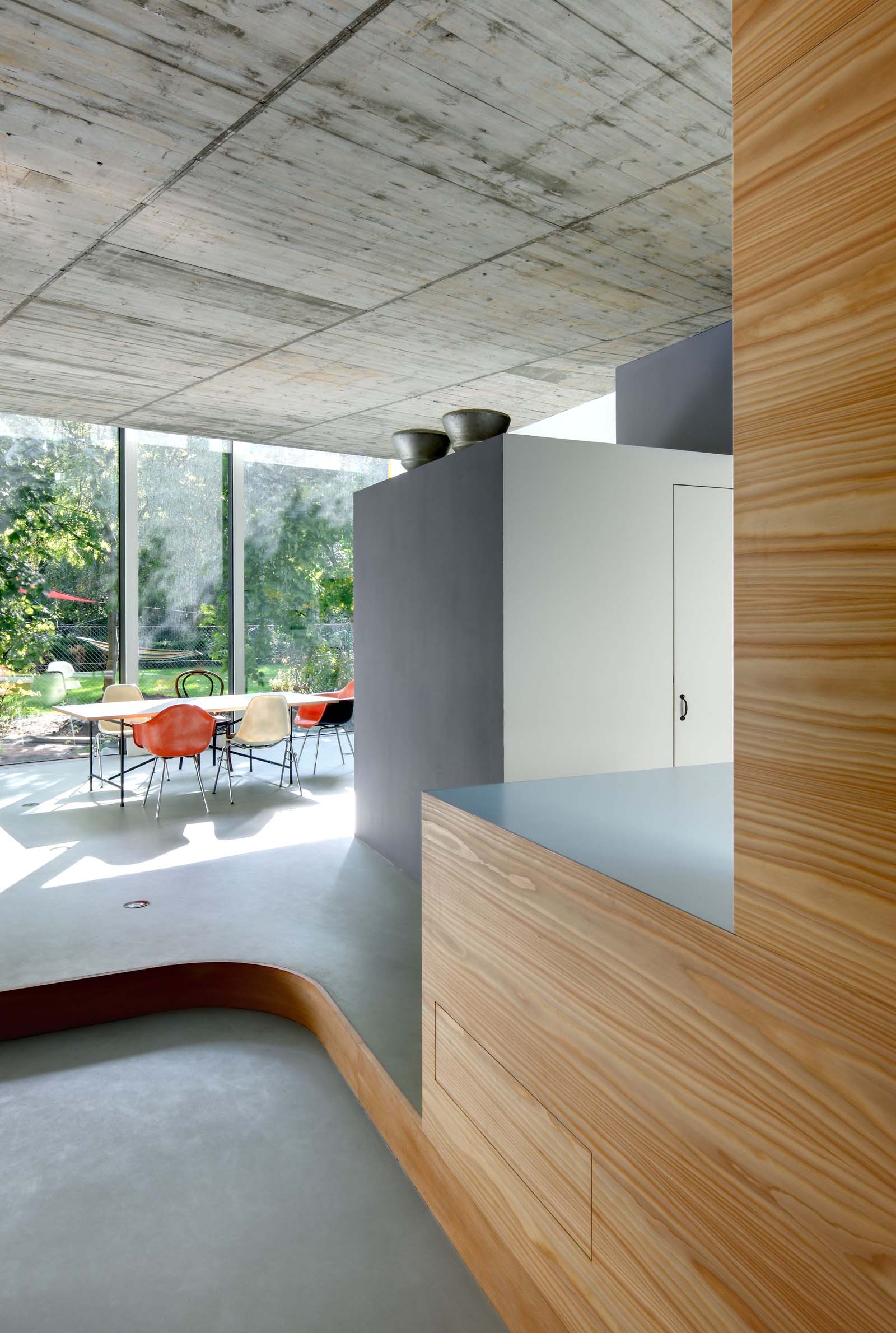 Haus FL offers a fresh interpretation of the concept of the one-room house. Its various spaces are connected by a promenade that leads from the basement hall via a single-flight staircase to the rooftop offering a view of Berlin, with the juxtaposition of open and introverted spaces reflecting the occupants’ family life.