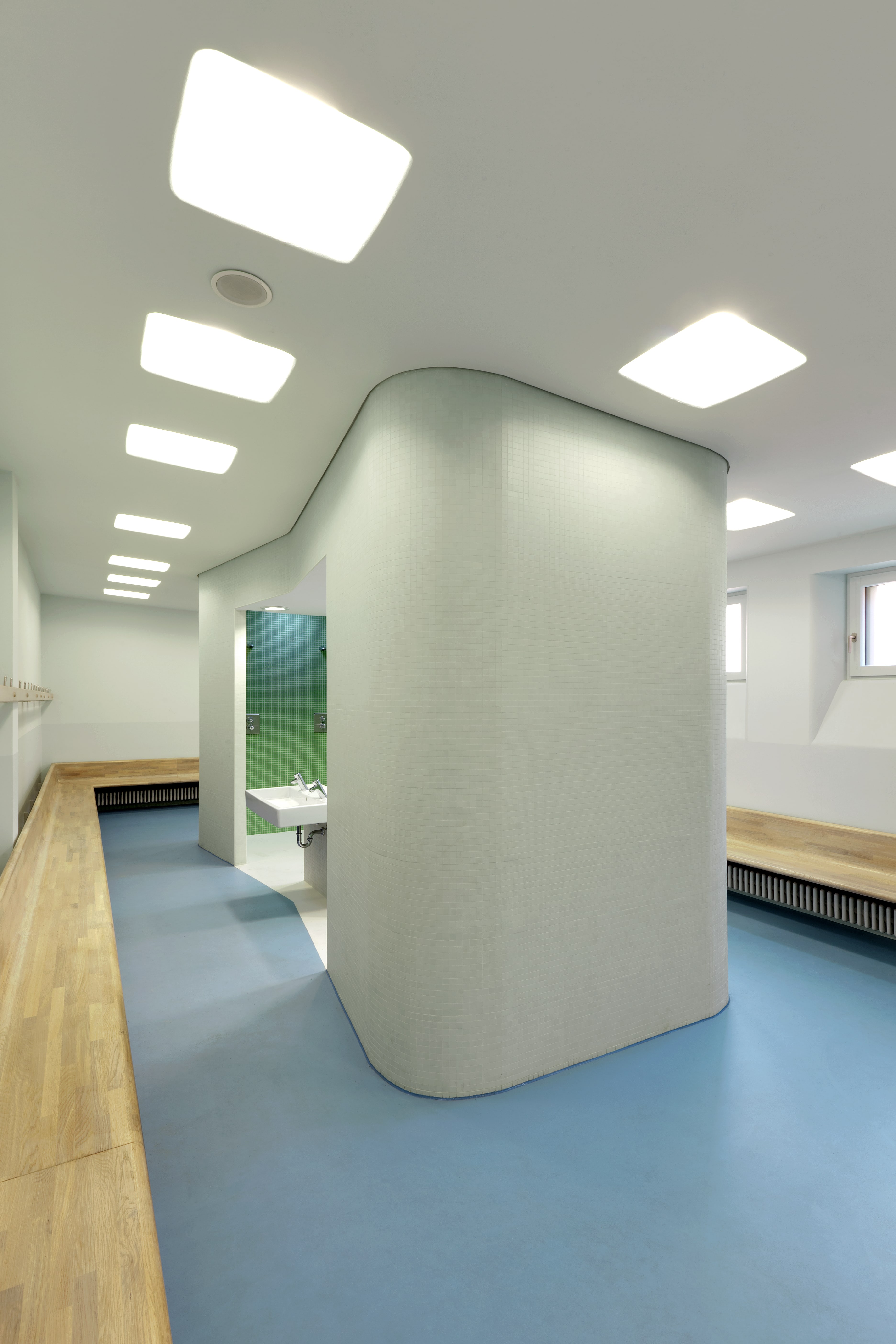 The gymnasium's alteration and reconstruction allow for its long-hidden qualities to be restored and further enhanced thanks to modern knowledge on spatial perception. The result is a place in which physical exercise can again be a joyful interaction of body, soul, and space.